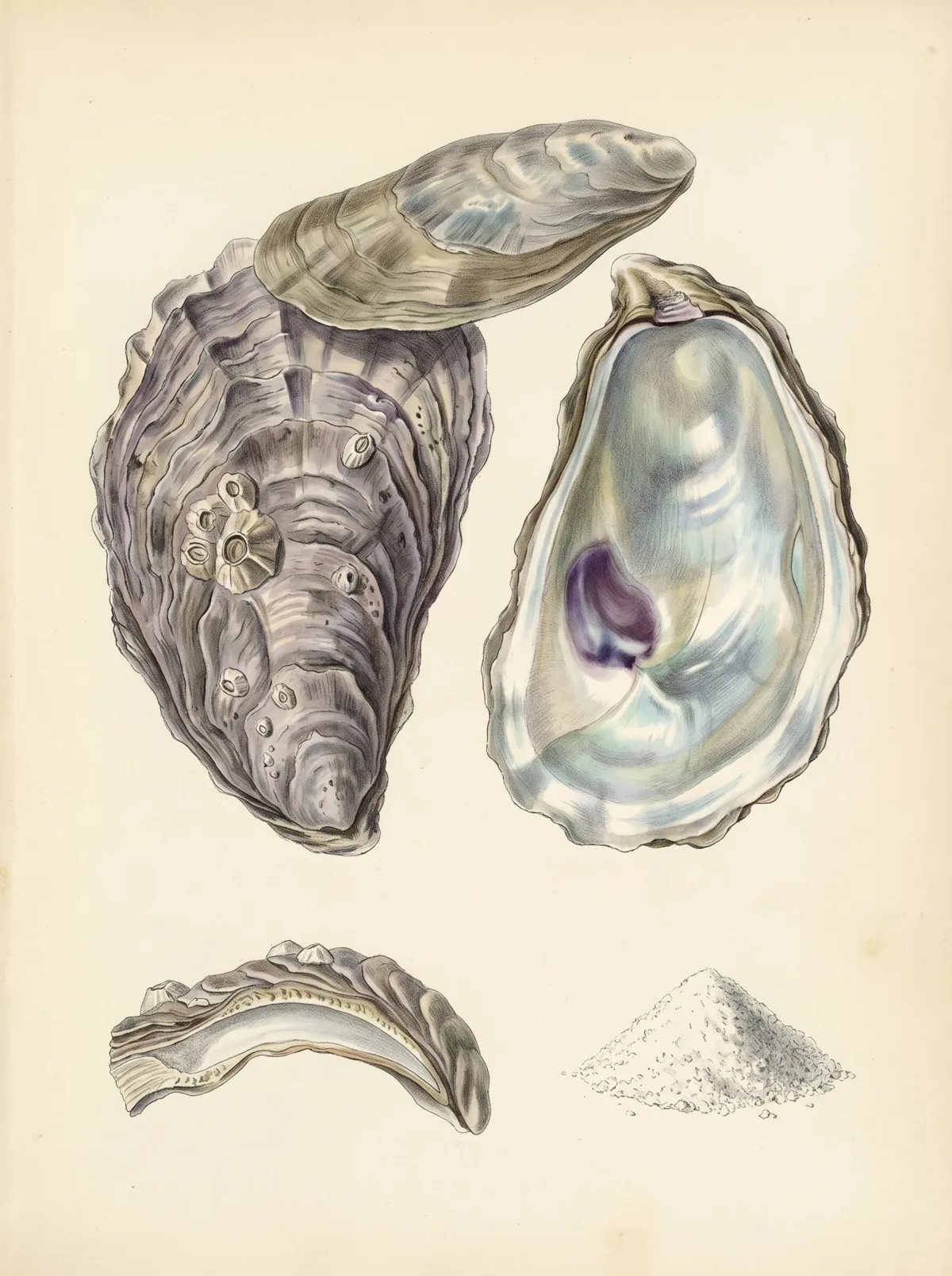 Mu Li — die Schale der Auster Ostrea gigas — ist ein mineralisches Arzneimittel der oberen Klasse. In der TCM verankert es aufsteigendes Yang, beruhigt den Geist und erweicht Verhärtungen wie Schilddrüsenknoten.