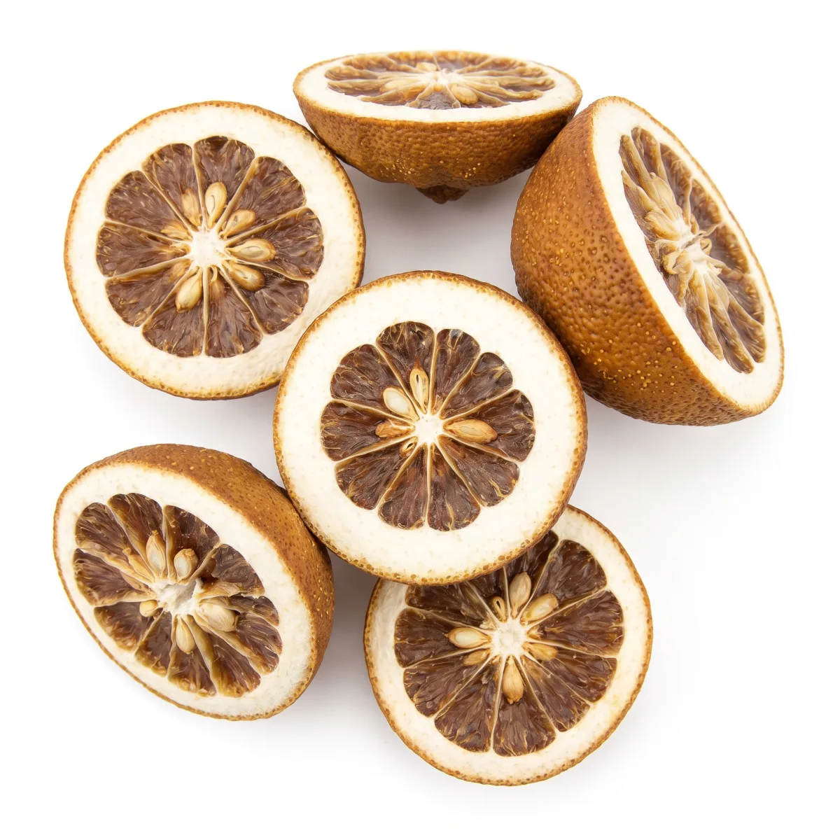 Die geernteten grünen Früchte werden halbiert und anschließend an der Sonne oder bei niedriger Temperatur getrocknet. Die charakteristische halbkugelförmige Schnittfläche mit dem sichtbaren weißen Mesokarp ist das klassische Erkennungsmerkmal von Zhi Ke.- Roh (Sheng Zhi Ke): Halbiert und getrocknet; die Standardverarbeitung für die meiste klinische Anwendung — behält die kräftige Qi–bewegende Wirkung bei.