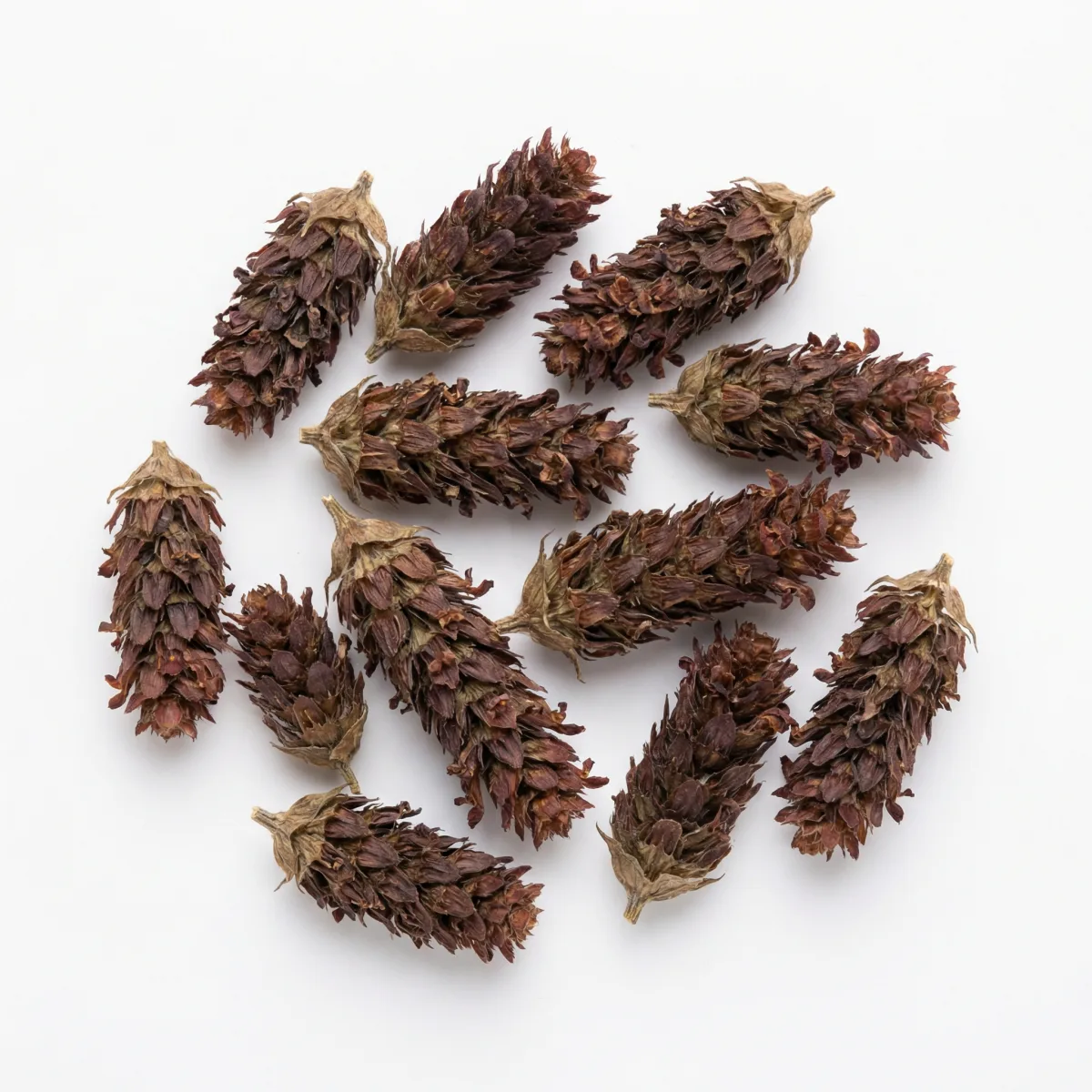 Xia Ku Cao — die Braunellen–Ähre — ist eines der wichtigsten Kräuter zum Klären von Leber–Feuer und Auflösen von Knoten. Ihr Name bedeutet wörtlich Sommer–verwelkend, da die Ähre zur Sommersonnenwende vertrocknet — ein botanisches Phänomen, das in der TCM als Zeichen ihrer besonderen Fähigkeit gedeutet wird, überschüssiges Yang und Feuer zu klären. In der klinischen Praxis wird Xia Ku Cao besonders bei Kopfschmerzen durch Leber–Feuer, geröteten und schmerzhaften Augen sowie bei Lymphknotenschwellungen und Schilddrüsenknoten eingesetzt. Ihre Kombination aus Hitze klärender und Knoten auflösender Wirkung ist in der TCM–Materia Medica einzigartig.