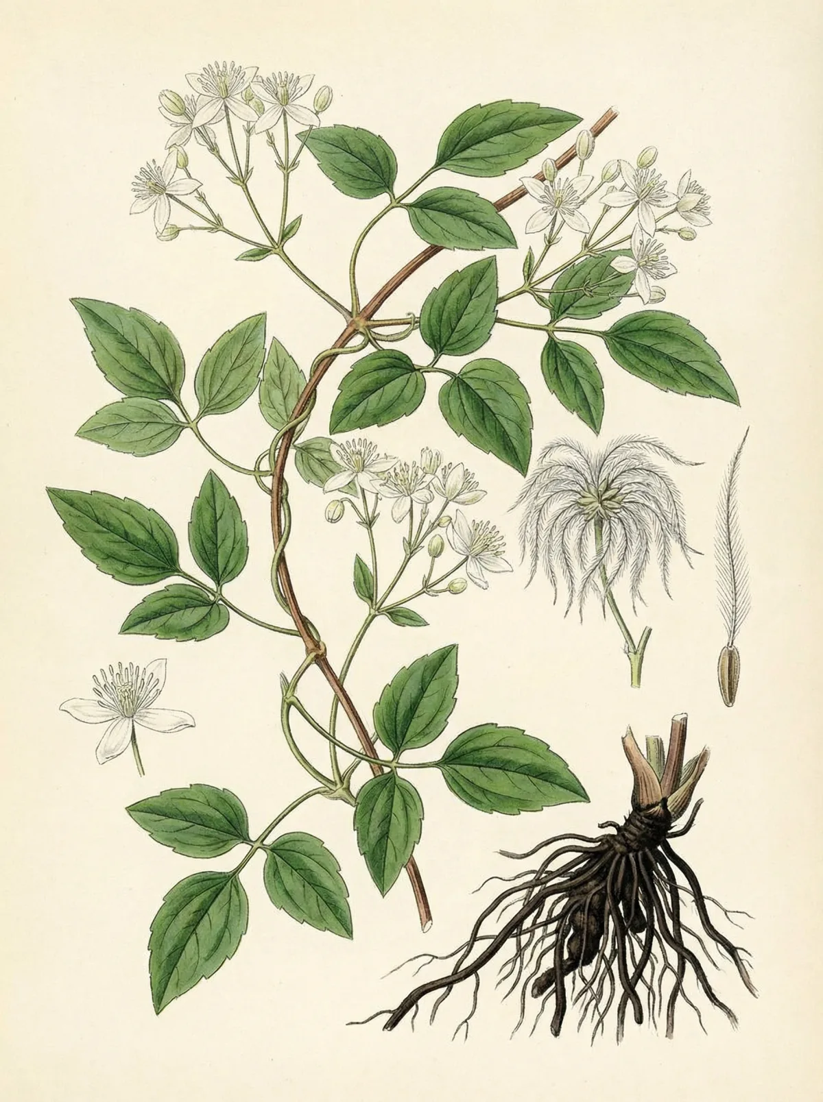 The name Wei Ling Xian (威灵仙) bedeutet wörtlich „Eindrucksvolle–göttliche–Unsterbliche" — ein Name, der den Respekt der alten chinesischen Heiler vor der Kraft dieser Wurzel widerspiegelt. Kein gewöhnliches Kraut trägt einen solchen Namen: Nur wer wie ein Unsterblicher wirkt, verdient ihn. Die Clematis–Wurzel galt als so eindrucksvoll wirksam, dass Ärzte und Kräutersammler der Song–Dynastie sie mit übernatürlichen Kräften verbanden.