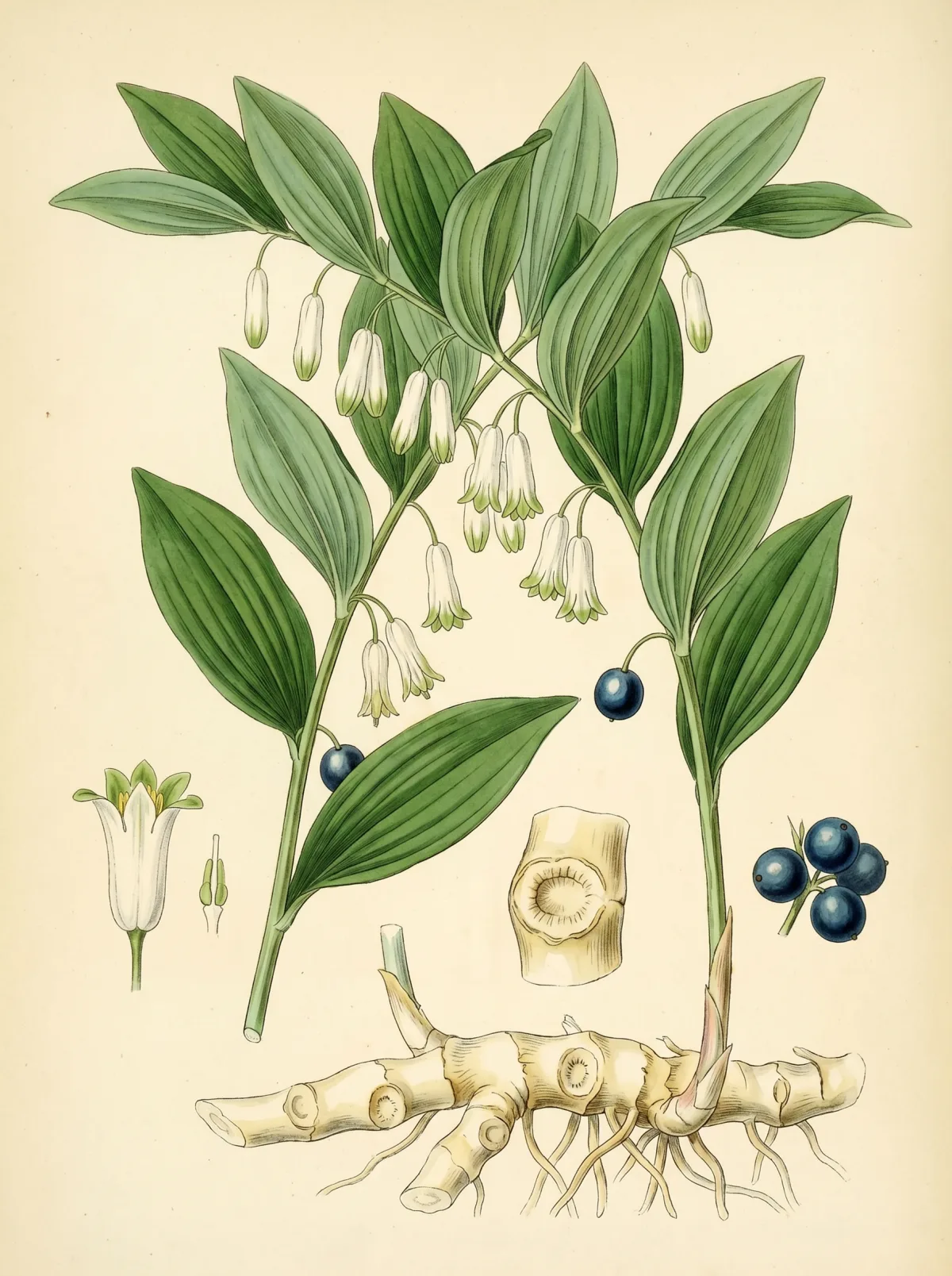 - Amerikanischer Salomonsiegel (Polygonatum biflorum): Botanisch eng verwandt, ähnliches Wirkstoffprofil; in der nordamerikanischen Phytotherapie bei Gelenkbeschwerden und zur allgemeinen Stärkung eingesetzt