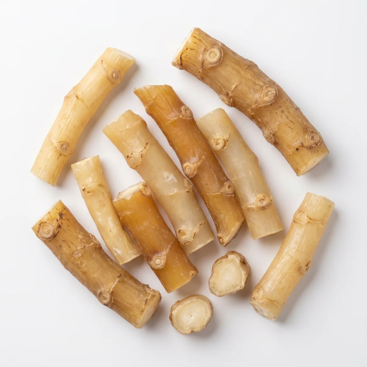 - Main harvest: Herbst (September–November), wenn die oberirdischen Teile abgestorben sind und das Rhizom die höchste Konzentration an Polysacchariden und Saponinen aufweist