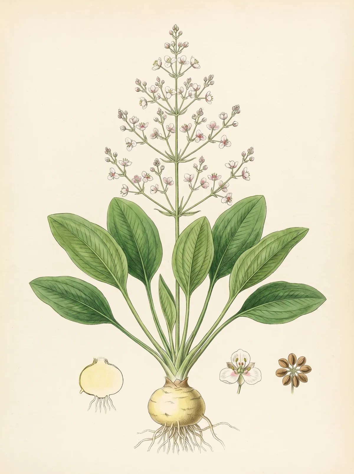 Ze Xie — die Knolle des Orientalischen Froschlöffels (Alisma orientale) — ist eines der wichtigsten Feuchtigkeit–ausleitenden Kräuter der TCM. Sie wächst selbst in sumpfigem Wasser und besitzt die Fähigkeit, pathologische Feuchtigkeit aus dem Körper zu leiten — ein klassisches Beispiel für das Signaturprinzip. In der berühmten Rezeptur Liù Wèi Dì Huáng Wán spielt Ze Xie eine entscheidende Rolle als „Drainagemittel", das die nährende Wirkung von Shú Dì Huáng ausbalanciert und verhindert, dass Feuchtigkeit und trübe Substanzen den unteren Erwärmer blockieren. Ze Xie leitet Feuchtigkeit–Hitze über den Urin aus und klärt gleichzeitig aufsteigendes Nieren–Feuer.