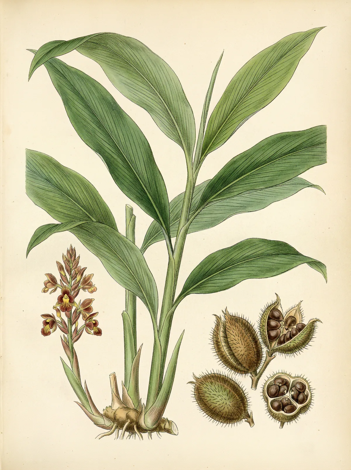 Sha Ren wurde in der Tang–Dynastie als Import aus Südostasien nach China gebracht und im Kāi Bǎo Běn Cǎo der Song–Dynastie systematisch beschrieben. Es wurde schnell zu einem der meistverwendeten aromatischen Arzneimittel der chinesischen Medizin. Der Name Shā Rén bedeutet wörtlich Sand–Kern — ein Verweis auf die sandige Textur der Fruchthülle und die darin enthaltenen Samen.