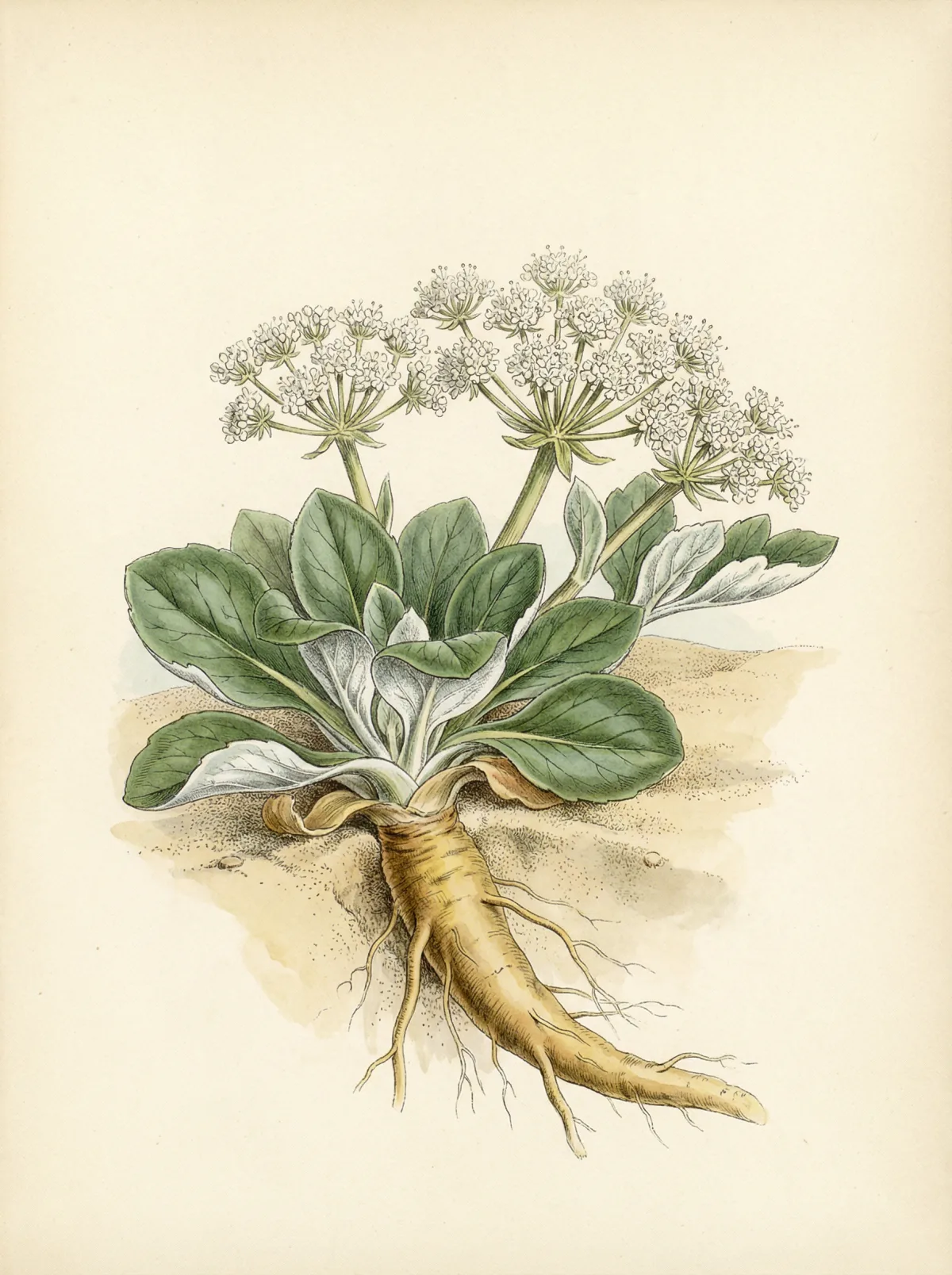 Sha Shen wurde im Shén Nóng Běn Cǎo Jīng als Mittel zur Nährung der Lunge beschrieben. In der Ming–Dynastie unterschied man erstmals zwischen Bei Sha Shen (nördliche Sandwurzel — Glehnia) und Nan Sha Shen (südliche Sandwurzel — Adenophora). Beide nähren das Yin, aber Bei Sha Shen gilt als stärker befeuchtend. Der Name Shā Shēn bedeutet wörtlich Sand–Ginseng — ein Hinweis auf den sandigen Küstenboden, in dem Glehnia bevorzugt wächst.