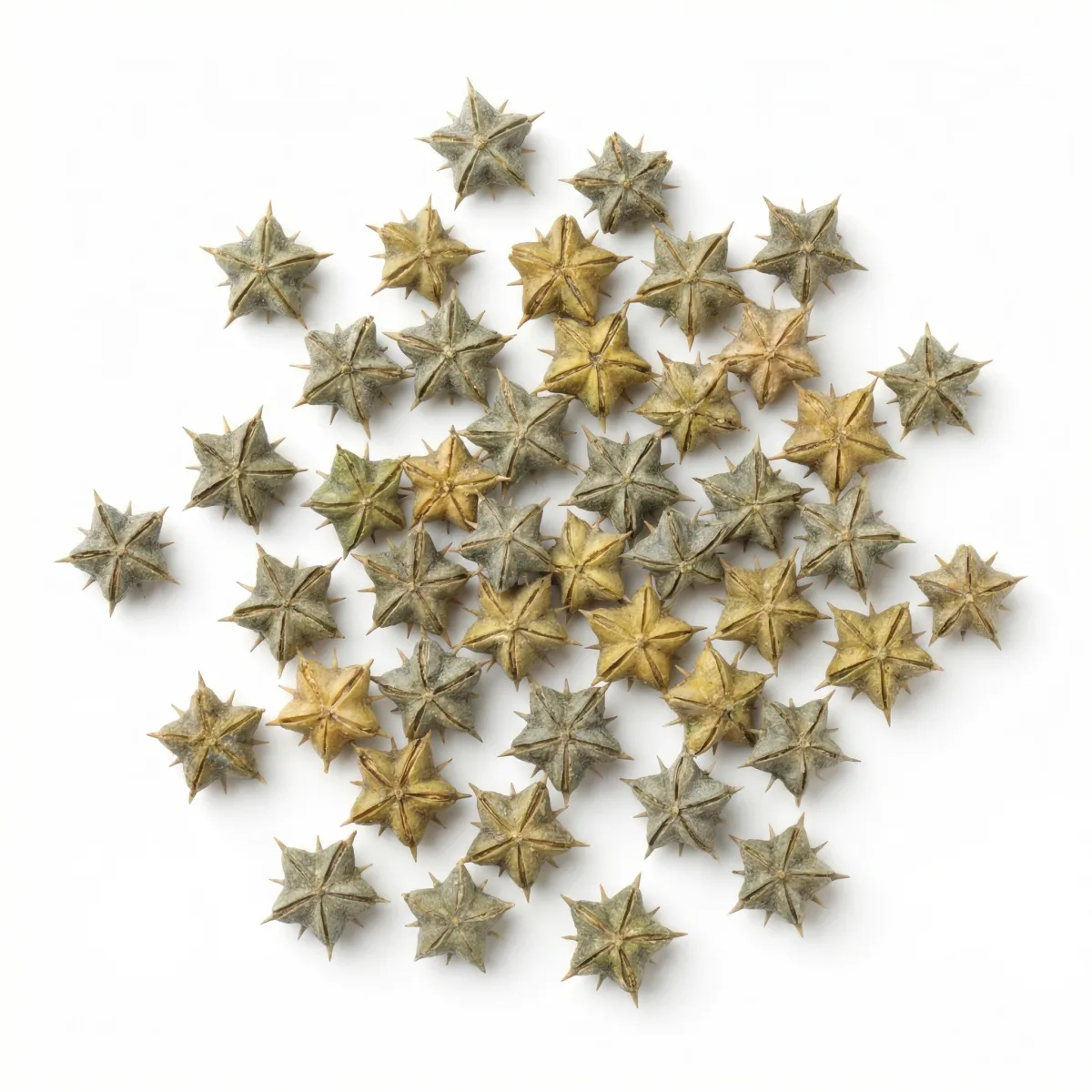 Bai Ji Li — die Frucht des Burzeldorns (Tribulus terrestris) — ist ein vielseitiges Kraut, das die Leber beruhigt und aufsteigendes Yang absenkt. Die stacheligen Früchte werden seit der Han–Dynastie verwendet und sind bei Kopfschmerzen, Augenbeschwerden und Hautjucken bewährt.