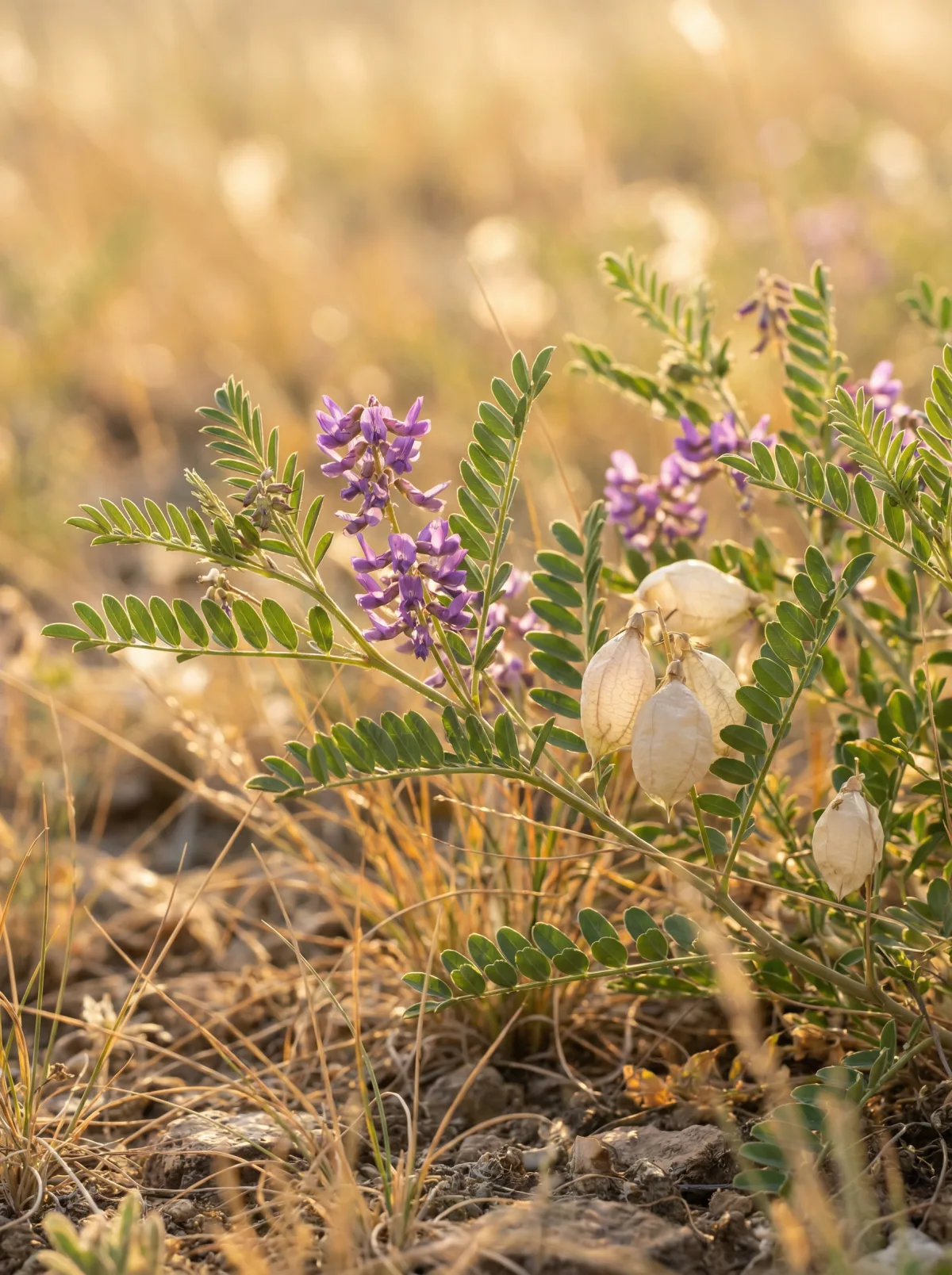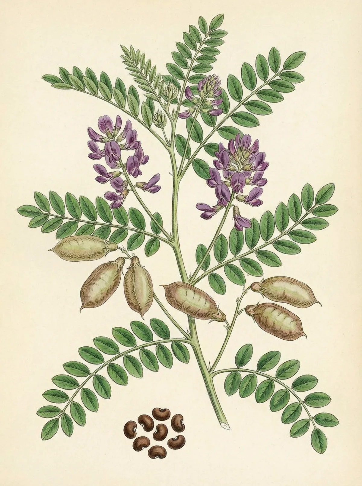 Sha Yuan Zi wird im Shén Nóng Běn Cǎo Jīng als Kraut der oberen Klasse geführt — ursprünglich unter dem Namen Shā Yuàn Jí Lí (沙苑蒺藜). Der Name verweist auf die Sandebene Sha Yuan in Shaanxi, wo die Pflanze einst reichlich wuchs. In der klassischen Rezeptur Jin Suo Gu Jing Wan bildet Sha Yuan Zi zusammen mit Qian Shi und Lian Zi das adstringierende Fundament zur Festigung der Nieren–Essenz bei Spermatorrhoe und nächtlichen Emissionen. Die Samen werden seit der Ming–Dynastie auch zur Stärkung der Sehkraft eingesetzt — eine Wirkung, die über den Leber–Nieren–Bezug erklärt wird: Die Niere nährt das Mark, das Mark nährt das Gehirn, und die Leber öffnet sich in die Augen.
