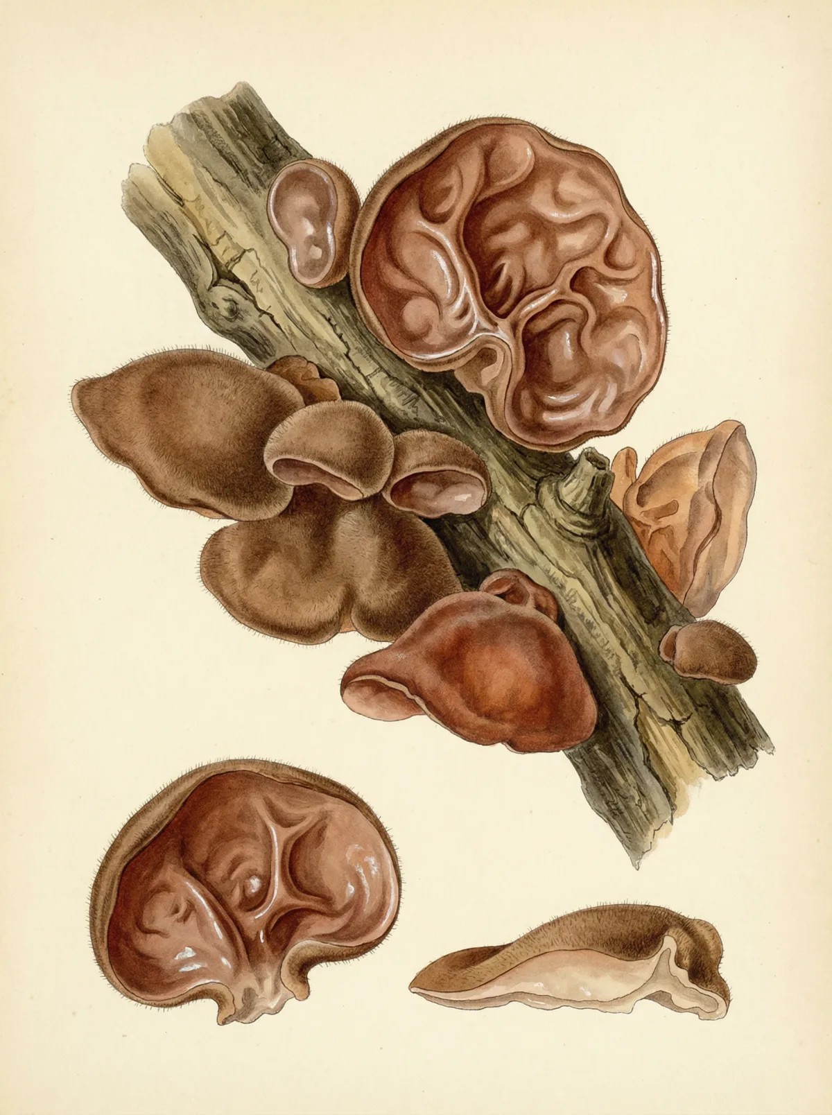 Mu Er — der Holzohrpilz — ist ein mildes, nahrungsnahes Heilmittel, das Blut nährt, Yin befeuchtet und Blutstagnation sanft auflöst. Als Nahrungsmittel und Arznei zugleich ist er fester Bestandteil der chinesischen Küche und Medizin. Besonders geschätzt bei Blut–Mangel mit Trockenheit und bei Neigung zu Blutgerinnseln.