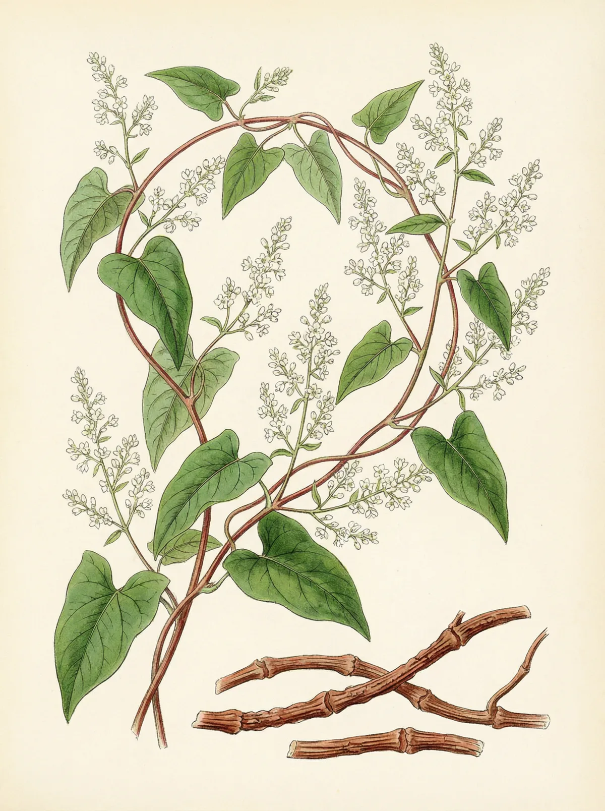 Die Ranke des Knöterichs windet sich nachts um ihren eigenen Stamm und öffnet sich am Morgen wieder — daher ihr poetischer Name Ranke des nächtlichen Umarmens. In der TCM beruhigt sie den Geist bei Schlaflosigkeit und nährt gleichzeitig das Blut, das den Shen verankert.