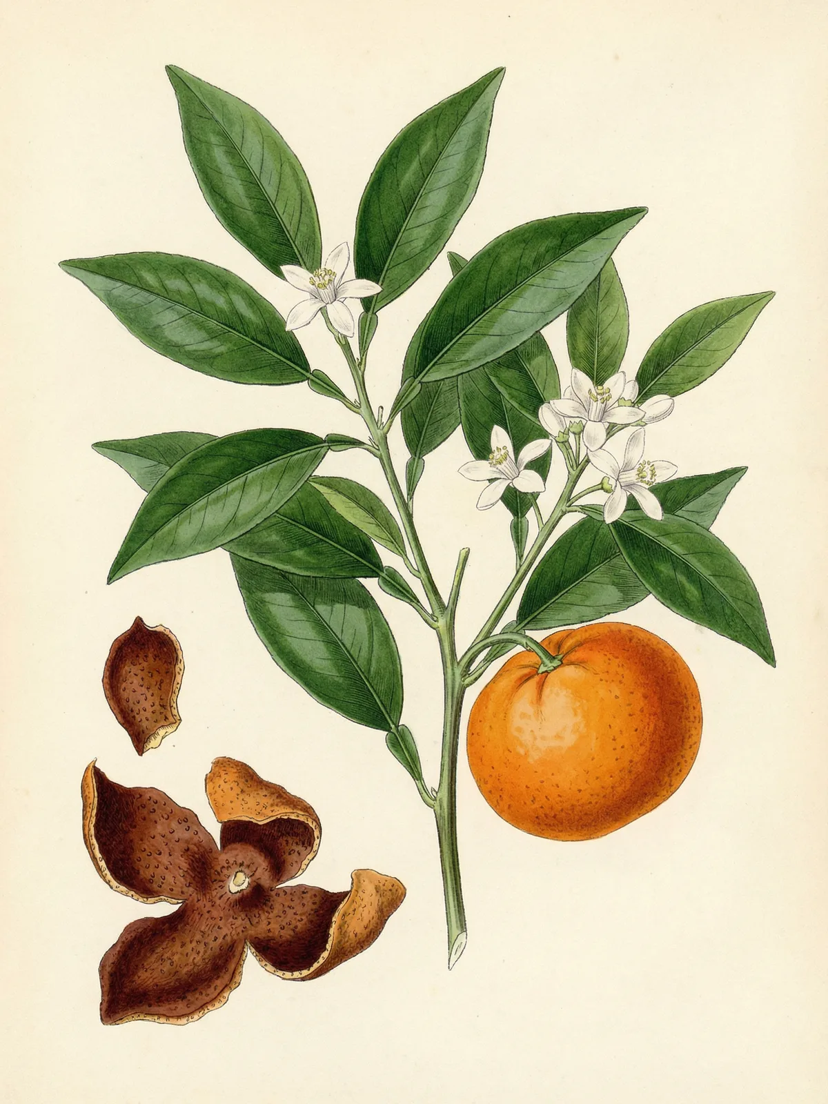 Die Schale — der Arzneiteil — wird von reifen oder fast reifen Früchten abgeschält und getrocknet. Frische Schale (Jú Pí) hat andere Eigenschaften als gereifte Schale (Chén Pí): Mit zunehmender Lagerung verliert sie ätherisches Öl, während der Flavonoid–Gehalt steigt und die Wirkung milder und harmonisierender wird. Diese chemische Veränderung erklärt die TCM–Beobachtung, dass ältere Schalen besser verträglich sind.