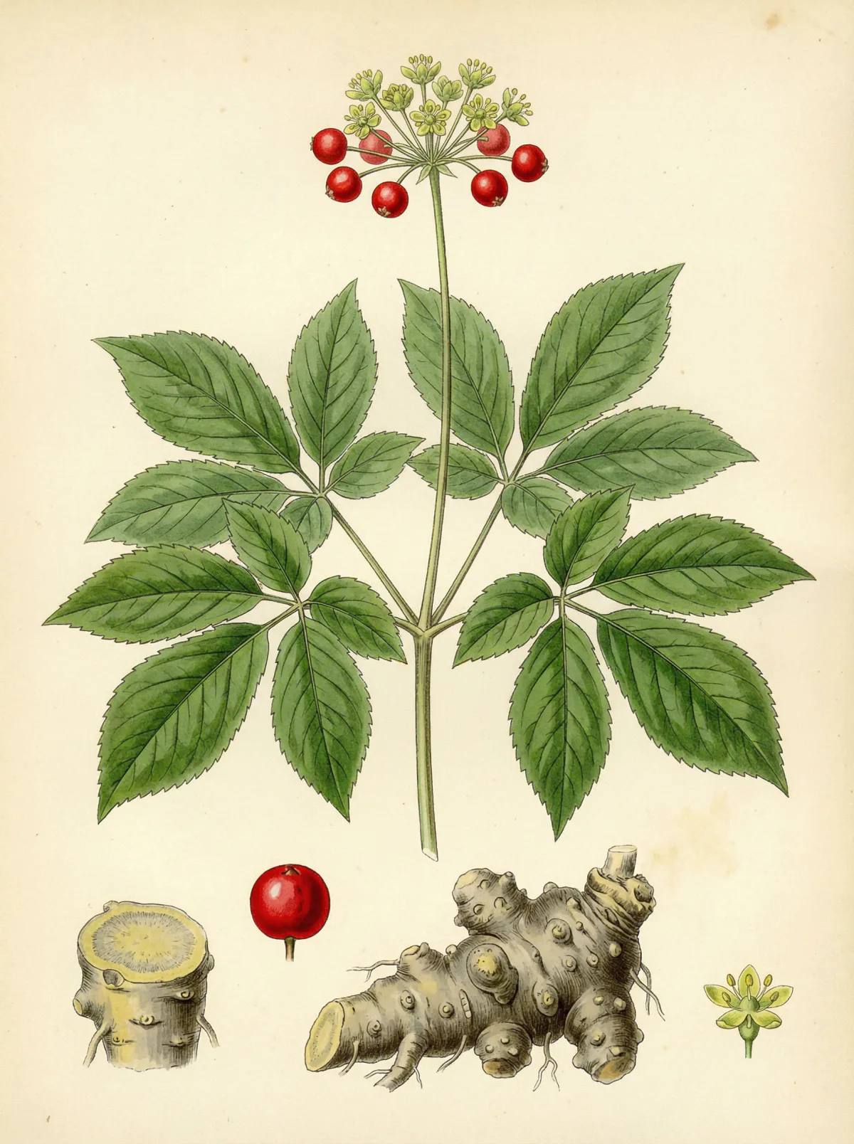 Panax notoginseng enthält über 50 Notoginsenoside (insbesondere R1, Rb1, Rg1), Dencichine und Polysaccharide. Es ist eines der am intensivsten erforschten TCM–Kräuter mit über 3000 Publikationen.
