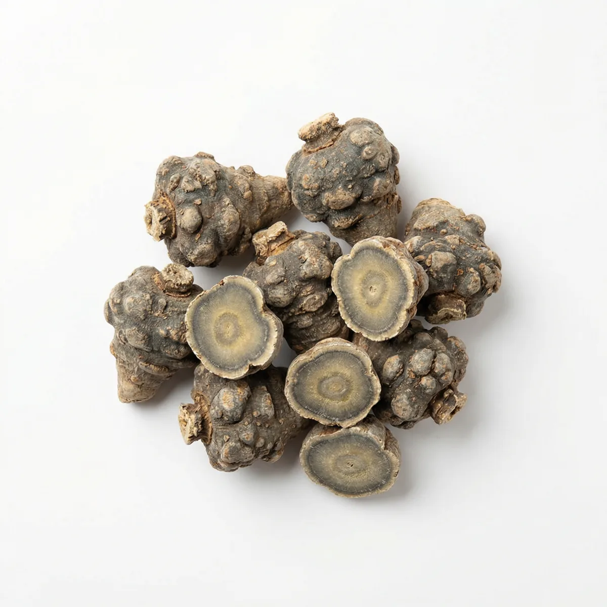 San Qi (Panax notoginseng) gehört zur selben Gattung wie Ginseng, doch seine Stärke liegt nicht im Qi, sondern im Blut. Die Wurzel aus der Provinz Yunnan vereint zwei scheinbar gegensätzliche Wirkungen: Sie stillt Blutungen (hämostatisch) und löst gleichzeitig Blut–Stase auf (fibrinolytisch). Diese paradoxe Kraft macht San Qi zum unersetzbaren Mittel bei Traumata, Operationen und chronischen Blut–Stase–Mustern.