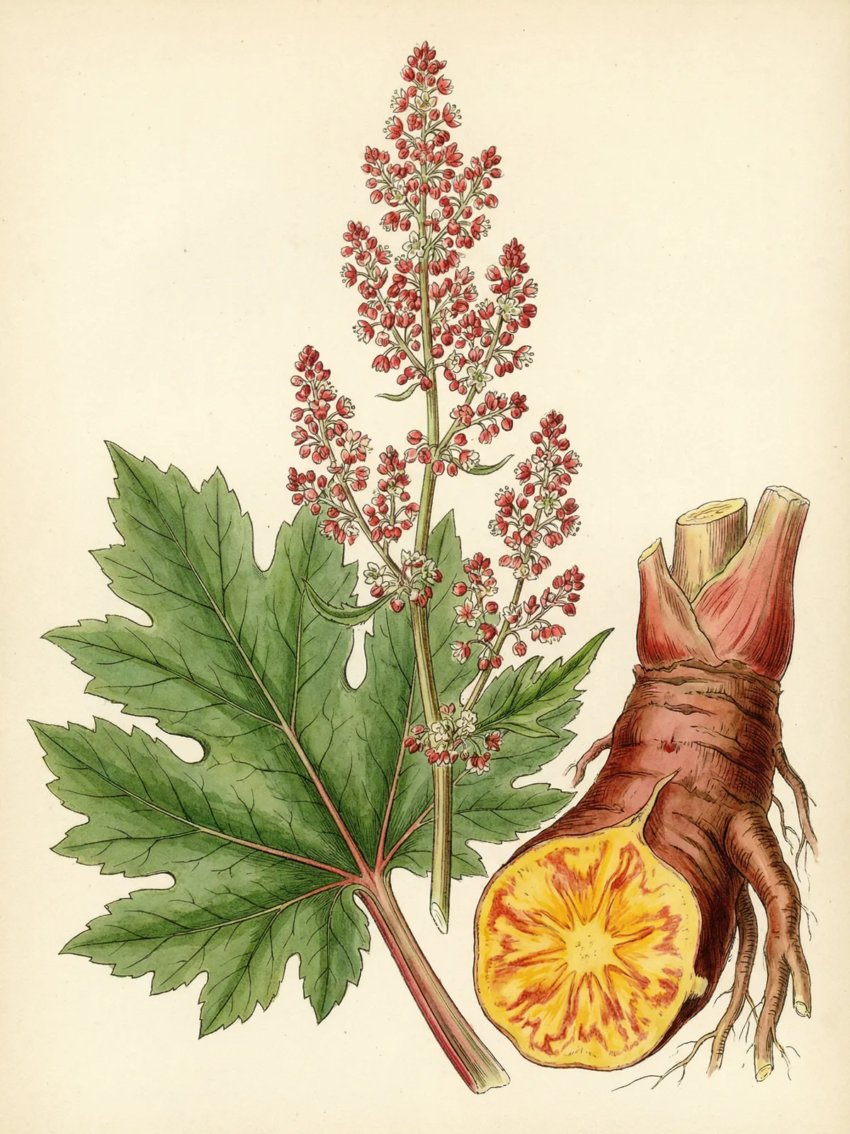 Der Beiname „General unter den Kräutern" beschreibt ihre durchgreifende Art: Da Huang purgiert Hitze–Fülle, öffnet den Darm, bewegt gestautes Blut und leitet feuchte Hitze aus. Je nach Dosierung und Verarbeitung entfaltet sie ein erstaunlich breites Wirkspektrum.