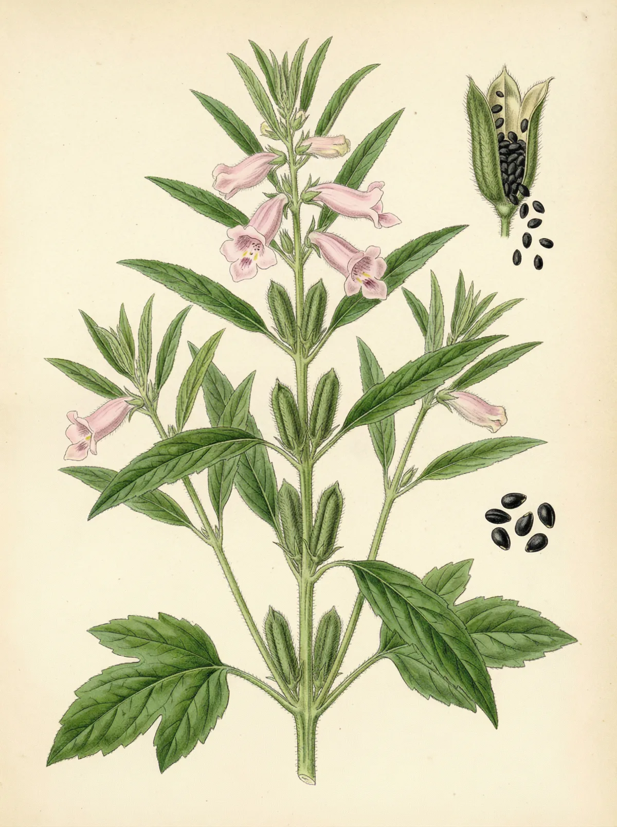 Hu Ma — der schwarze Sesamsamen — ist ein sanftes, nährendes Kraut der oberen Klasse, das seit Jahrtausenden sowohl als Arznei als auch als Lebensmittel geschätzt wird. In der TCM nährt er das Yin von Leber und Niere, befeuchtet den Darm und stärkt Haare, Haut und Knochen. Der schwarze Sesam gilt als die medizinisch wertvollere Variante gegenüber dem weißen Sesam.