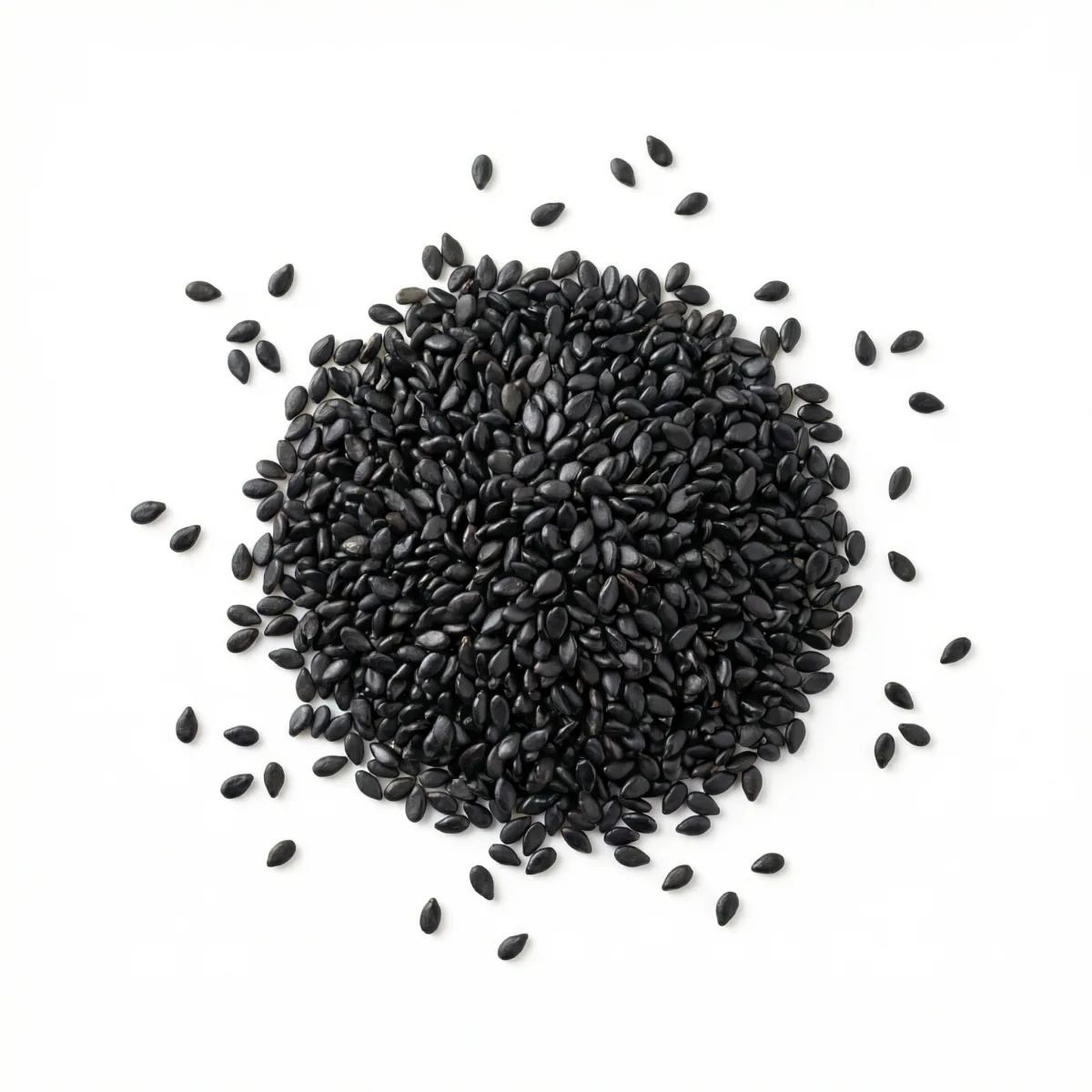 Sesamin und Sesamolin — die Hauptlignane — zeigen in Studien starke antioxidative Eigenschaften. Schwarzer Sesam enthält mehr Anthocyane und Phenolsäuren als weißer Sesam, was die höhere antioxidative Kapazität erklärt. Studien belegen cholesterinsenkende, blutdruckregulierende und hepatoprotektive Effekte. Der hohe Gehalt an Kalzium, Eisen und Zink stützt die traditionelle Anwendung zur Stärkung von Knochen und Blut.