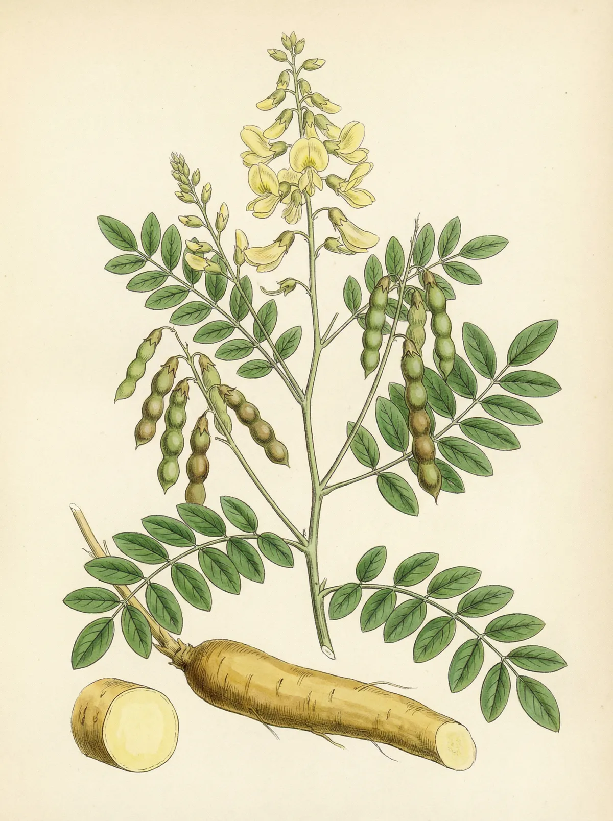 Ku Shen — die „bittere Wurzel" — gehört zu den ältesten dokumentierten Heilpflanzen der chinesischen Medizin. Bereits im Shén Nóng Běn Cǎo Jīng, dem Klassiker der Materia Medica aus der Han–Dynastie (ca. 200 n. Chr.), wird sie der mittleren Klasse zugeordnet und für ihre Wirkung gegen Hitze, Feuchtigkeit und Parasiten beschrieben. Der Name „Kǔ Shēn" bedeutet wörtlich „bittere Ginsengwurzel" — ein Hinweis auf die äußerliche Ähnlichkeit der Wurzel mit Ginseng, jedoch ohne dessen tonisierende Eigenschaften. In der langen Geschichte der TCM–Dermatologie nahm Ku Shen stets eine Schlüsselrolle ein. Das Běn Cǎo Gāng Mù des Gelehrten Li Shizhen (16. Jahrhundert) beschreibt ausführlich ihren Einsatz bei Juckreiz, Geschwüren und feuchten Hautausschlägen. Traditionell wurde die Wurzel sowohl innerlich im Dekokt als auch äußerlich in Sitzbädern und Waschungen angewendet — eine Praxis, die bis heute in der klinischen TCM–Dermatologie fortbesteht. In der volkstümlichen Medizin Chinas galt Ku Shen als unverzichtbares Mittel gegen parasitäre Erkrankungen. Bauern verwendeten Extrakte der Wurzel zur Behandlung von Darmparasiten sowie äußerlich bei Hautparasiten. Diese antiparasitäre Tradition findet sich in zahlreichen klassischen Rezepturen, darunter im Formularium des Jīn Guì Yào Lüè (Kostbare Rezepte der goldenen Kammer) aus der Han–Dynastie. Besonders im Bereich der Gynäkologie etablierte sich Ku Shen als wichtiges Kraut gegen feuchte Hitze. Bei Leukorrhö und Genitalpruritus war es fester Bestandteil äußerlicher Anwendungen. Diese Tradition wird bis heute gepflegt — Ku Shen–Waschungen gehören zur klassischen Behandlung von Vaginalinfektionen in der TCM. Die moderne Phytopharmakologie bestätigt viele dieser überlieferten Anwendungen durch den Nachweis der Wirkstoffe Matrin und Oxymatrin.