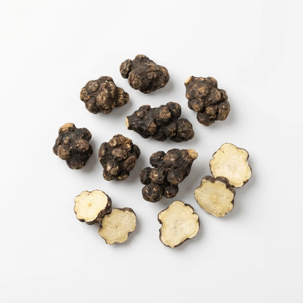 Mit E Zhu (Curcuma–Rhizom) bildet es das klassische Paar gegen Blut–Stase mit Massembildung — San Leng bewegt das Blut, E Zhu bewegt das Qi. Zusammen sind sie stärker als jedes einzeln. Mit Dang Gui und Chi Shao bei Blut–Stase im Uterus mit Dysmenorrhoe und Klumpenbildung. Mit Dan Shen und Tao Ren bei chronischer Blut–Stase mit fixierten Schmerzen im Abdomen.