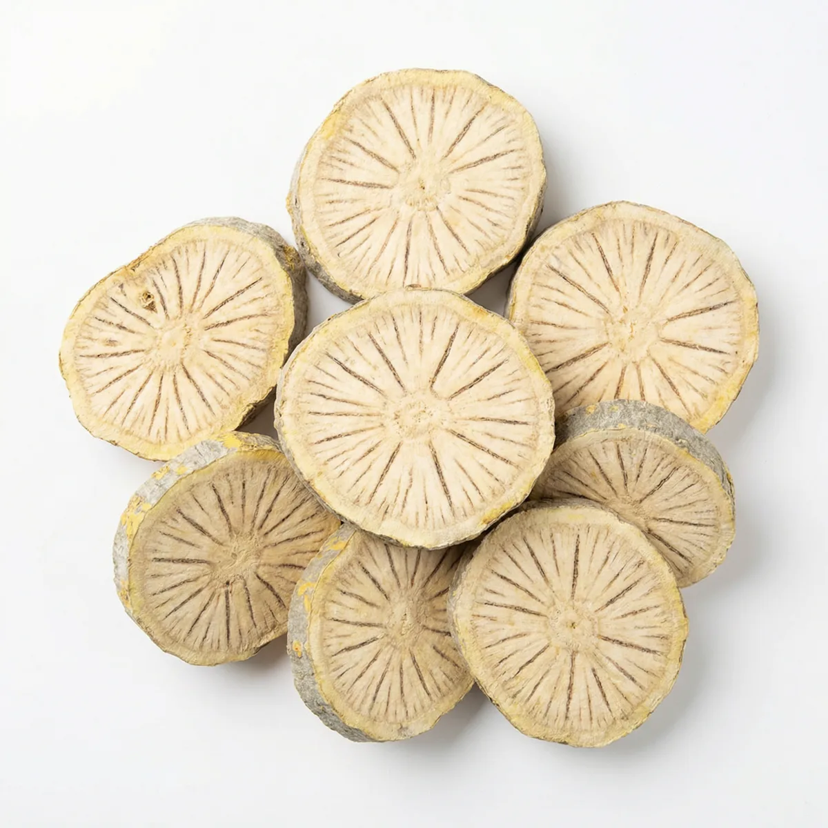 Der Name bedeutet wörtlich Schutzwurzel — und tatsächlich schützt Fang Ji die Gelenke vor eindringender Wind–Feuchtigkeit, während sie gleichzeitig Wasseransammlungen über die Blase ausleitet. Moderne Forschung isolierte daraus das Alkaloid Tetrandin mit entzündungshemmender Wirkung.