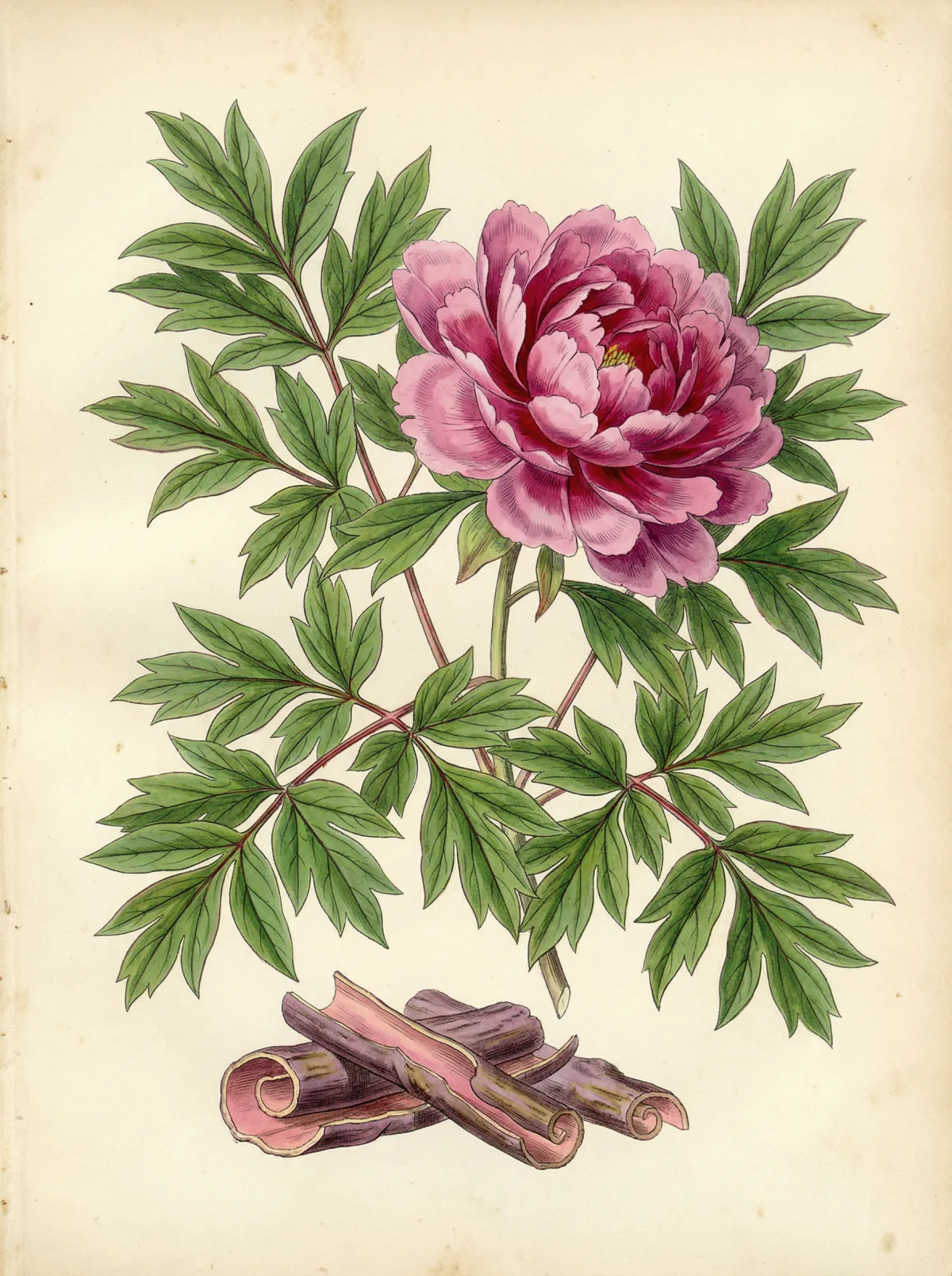 Mu Dan Pi erscheint bereits im Shén Nóng Běn Cǎo Jīng, dem ältesten chinesischen Arzneibuch, als Mittel der mittleren Klasse. Die Strauchpäonie (Mǔ Dān) galt im kaiserlichen China als „König der Blumen“ und symbolisierte Reichtum, Ehre und Schönheit. Während der Táng–Dynastie erreichte die Päonien–Kultur ihren Höhepunkt — in Luòyáng wurden Gärten mit Hunderten von Sorten angelegt. Doch die medizinische Verwendung der Wurzelrinde reicht viel weiter zurück: Bereits in der Hàn–Zeit wurde sie zur Kühlung des Blutes eingesetzt. Zhāng Zhòngjǐng verwendete Mu Dan Pi in mehreren Rezepturen, darunter das berühmte Guì Zhī Fú Líng Wán und die Liù Wèi Dì Huáng Wán–Familie. Diese Formeln sind bis heute in der klinischen Praxis unverzichtbar.