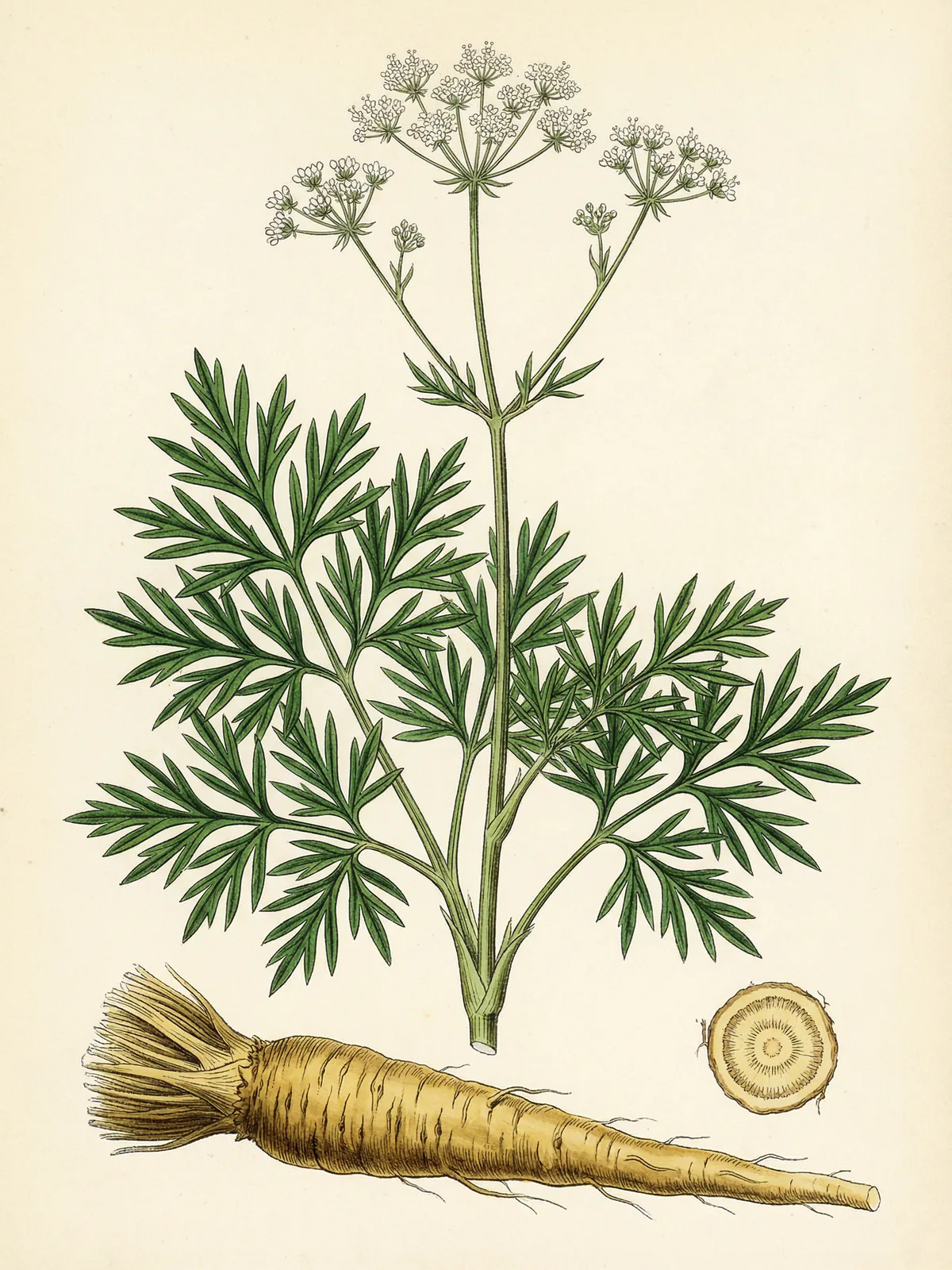 Fang Feng — wörtlich „Schutz vor Wind" — ist eines der vielseitigsten Kräuter gegen äußere pathogene Faktoren. Seit der Han–Dynastie wird es als mildes, aber effektives Mittel gegen Wind–Erkrankungen eingesetzt.