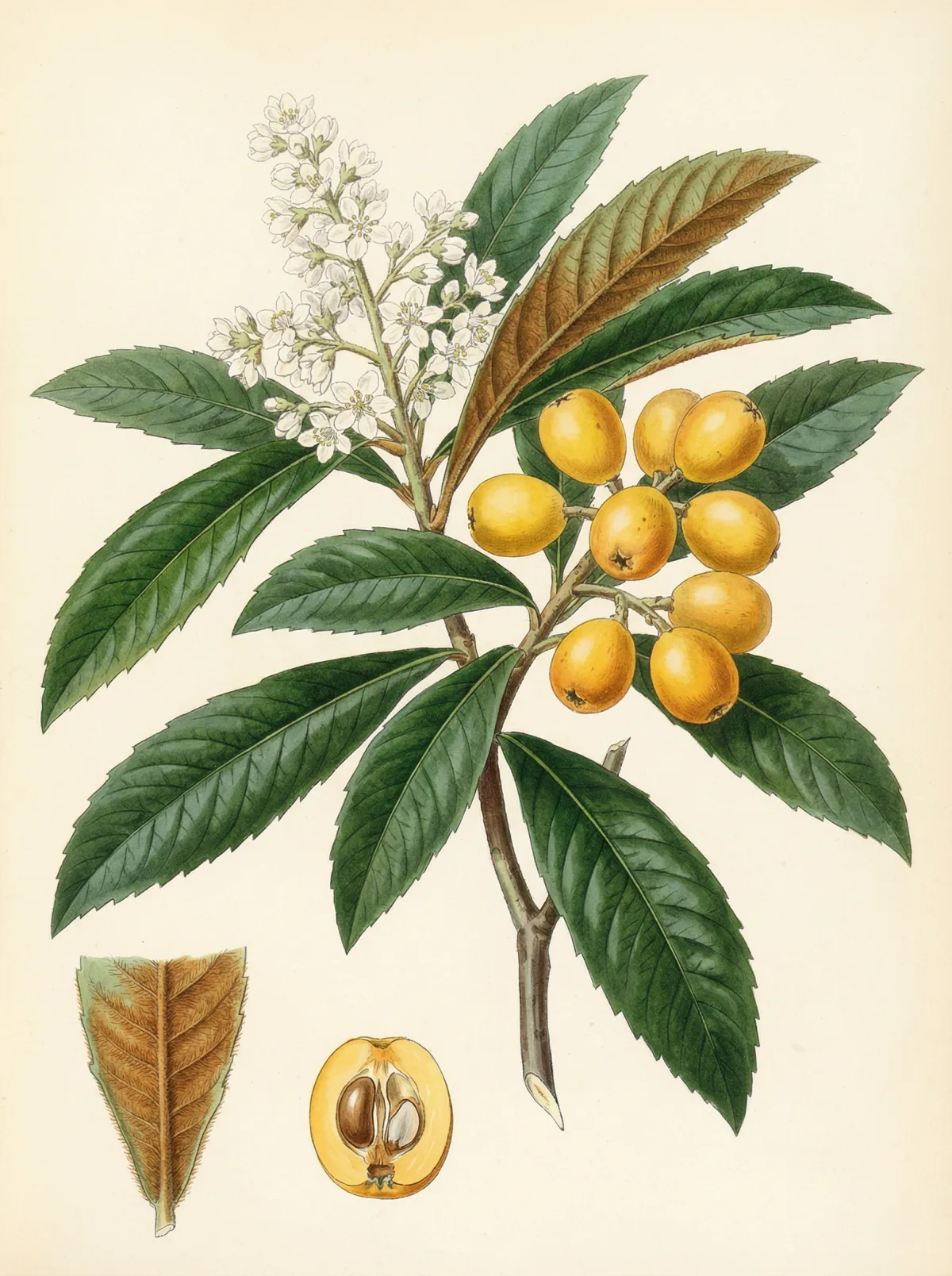 Eriobotrya japonica enthält Triterpensäuren (insbesondere Ursolsäure), Flavonoide und Amygdalin. Moderne Forschung bestätigt die antitussive und antiemetische Wirkung der TCM–Tradition.