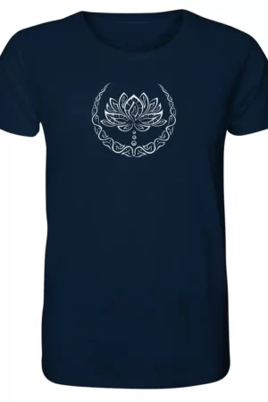 Questo disegno è perfetto per chi cerca uno stile sottile ma espressivo. Realizzato in cotone organico di alta qualità, il Maglietta con fiore di loto comfort e sostenibilità assoluti.